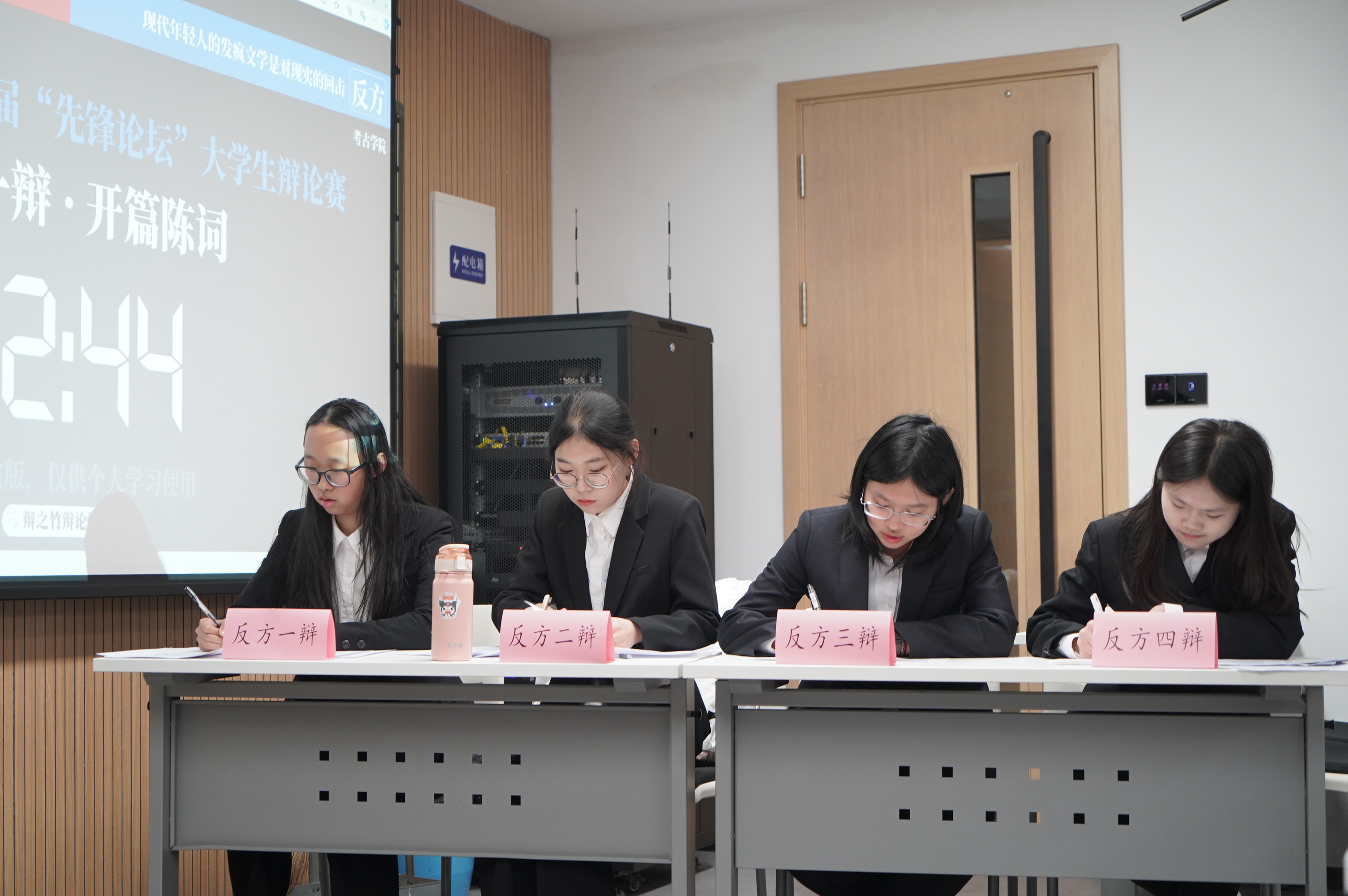 10月27日,第二轮小组赛第二场,太阳成集团tyc234cc辩论队对战软件公司辩论队,我方持“现代年轻人的发疯文学是对现实的回击”观点。队员陈瑞雯、薛紫琦、程玉星、赵亦婴在不到一周的短暂时间中克服困难、竭尽全力,并参加两场模拟辩论、力求准备充分;赛场上,他们火力全开、勠力同心,彰显了砥砺奋斗的可贵风貌。虽然最终我方因一票之差而落败,但三场比赛的经验积淀将为太阳成集团tyc234cc建设更高水平的辩论队添砖加瓦。