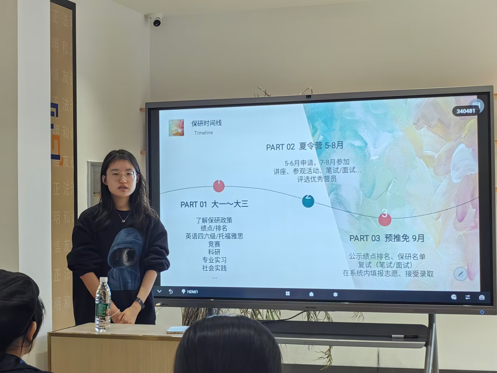 禹明岐重点强调了学业规划的重要性,按照时间顺序,从大一、大二、大三以及推免四个阶段提出了详细的规划建议,为同学们提供了明确的努力方向。