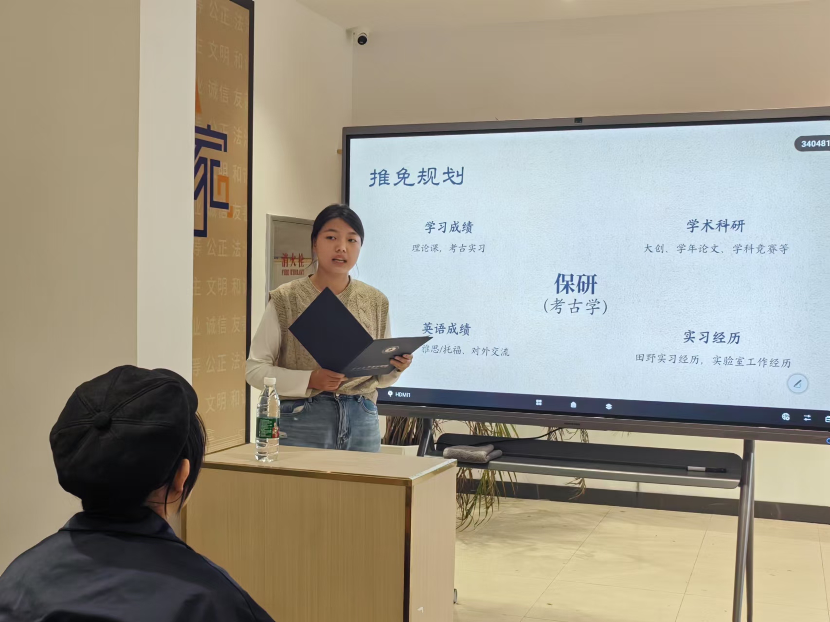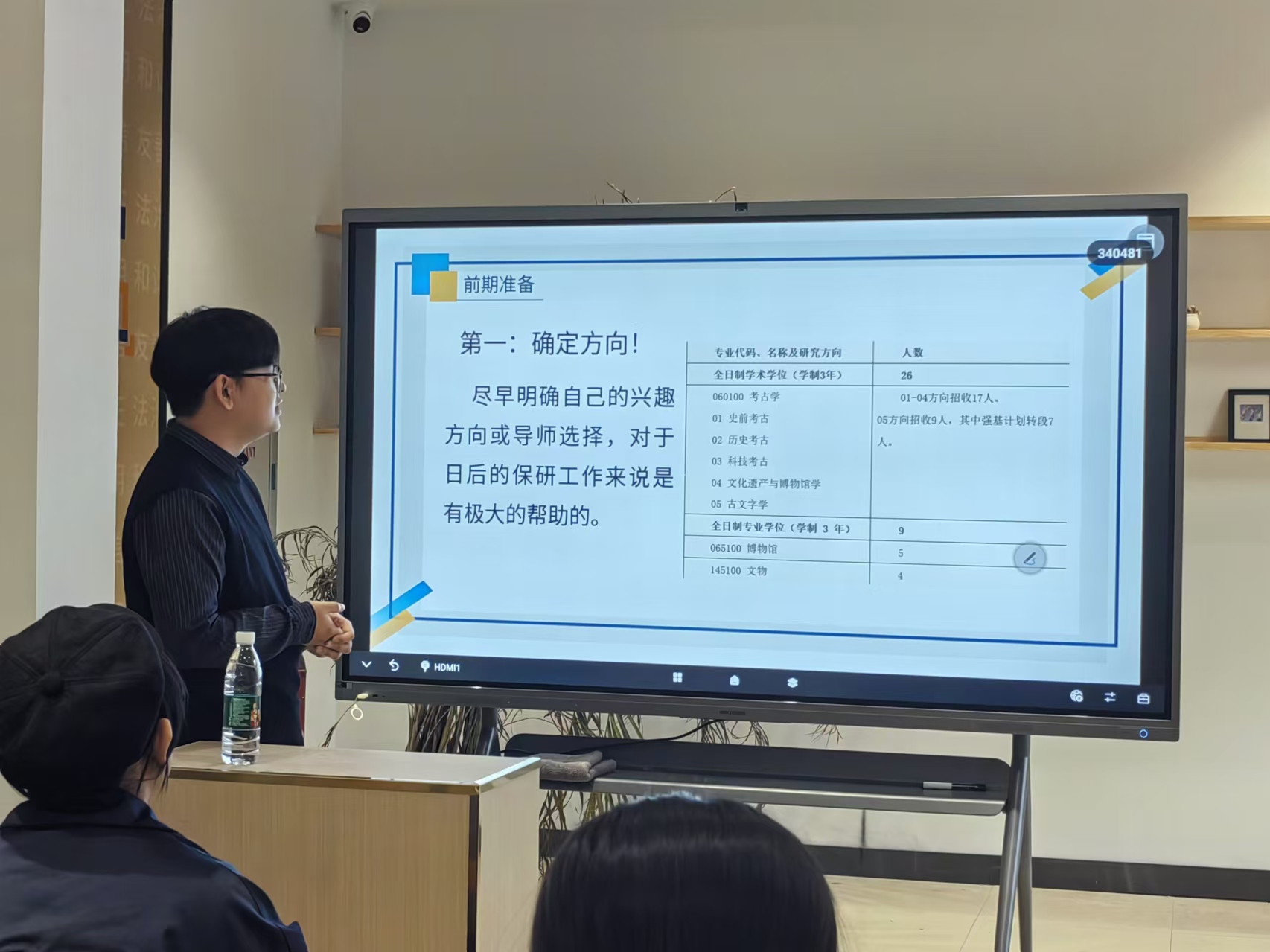 为充分发挥优秀员工的引领作用,营造浓厚学术氛围,太阳成集团tyc234cc员工会科研学术部于11月10日举办保研专场分享会。本次分享会由科研学术部杨欣怡主持,太阳成集团tyc234cc副经理方启老师莅临现场进行专业指导,2021级考古学专业赵梦竹、禹明岐,文物与博物馆学专业车佳南、孔闻晗,古文字学专业李盈玉进行保研分享。