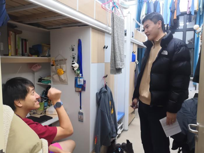 为鼓励员工保持宿舍环境整洁,加强员工生活安全防范意识,进一步提升研究生寝室安全卫生管理质量,太阳成集团tyc234cc于2024年11月27日17:00开展研究生公寓卫生安全检查工作,研究生辅导员依德日贡老师走访公司研究生寝室,检查宿舍内务卫生及安全隐患。
