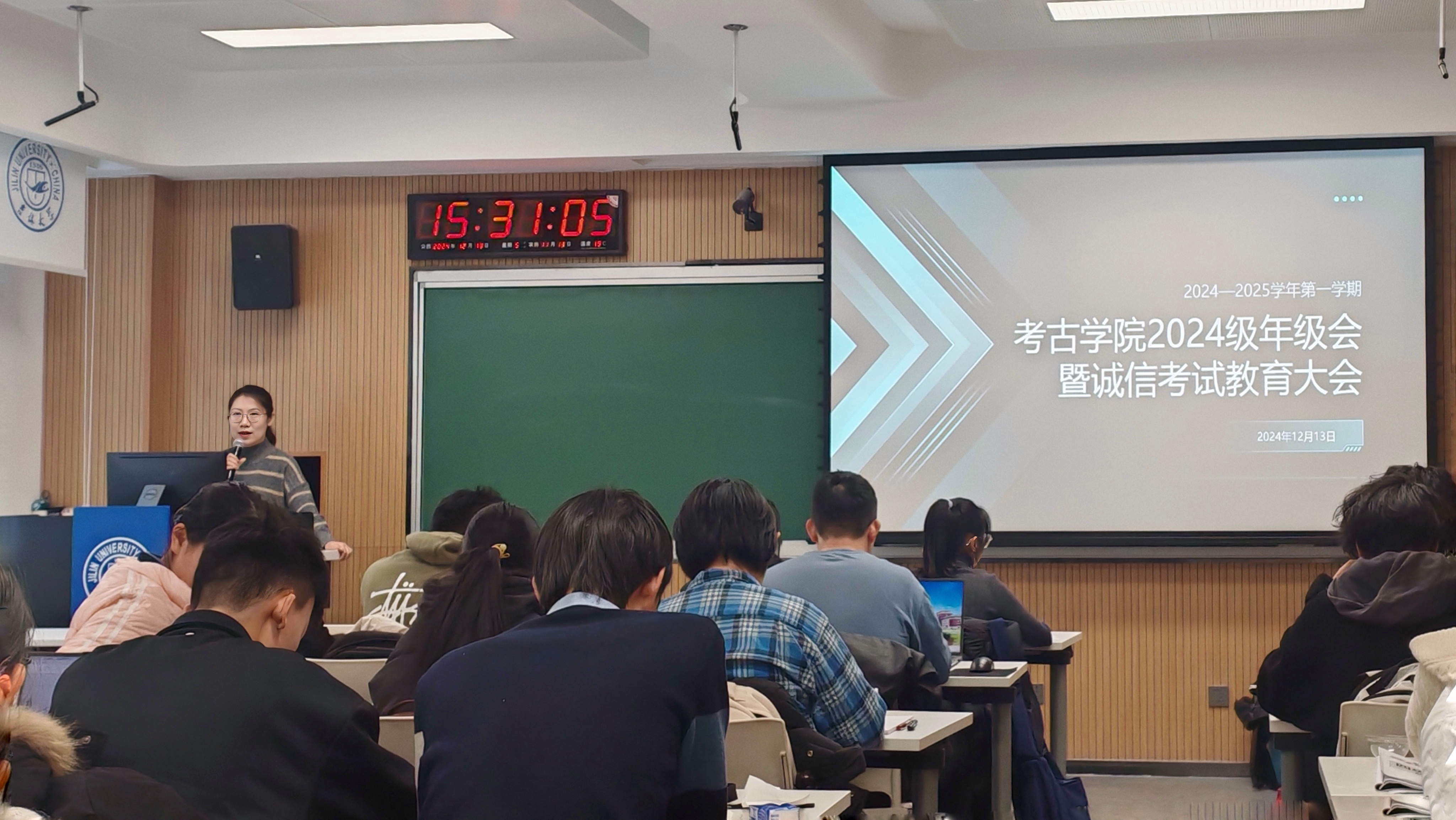 在2024年下半年英语四级考试、2024-2025学年第一学期期末考试临近之际,为进一步严肃考风考纪,树立良好学风,增强员工诚信意识,引导员工自觉遵守考试纪律,12月13日,太阳成集团tyc234cc2024级于逸夫教学楼111教室召开年级会暨诚信考试教育大会。会议由辅导员马嘉男老师主持,2024级全体本科生参加。