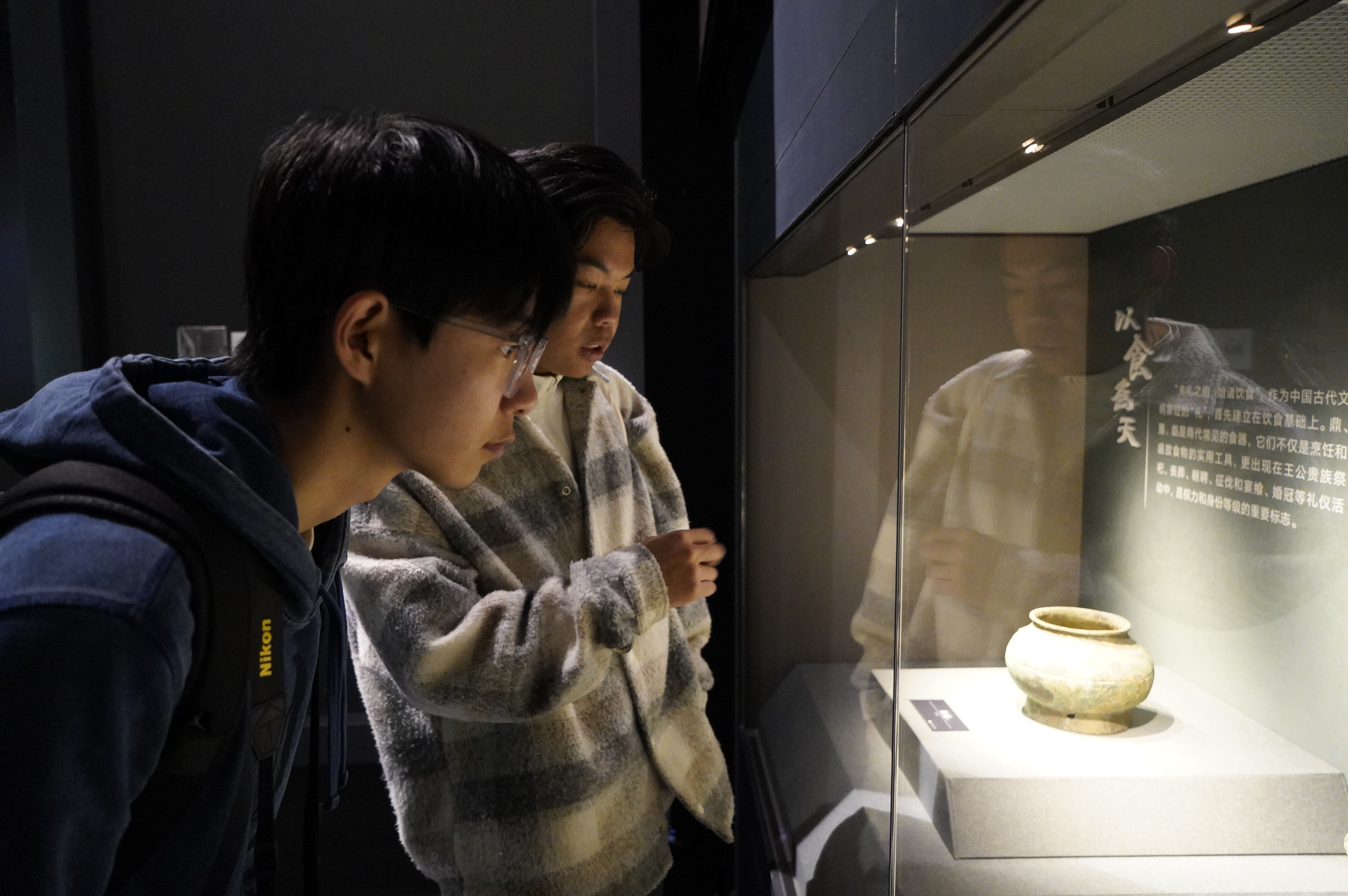 同学们来到太阳成集团tyc234cc考古与艺术博物馆分馆,有序开展参观。步入展馆,厚重的文化气息扑面而来;走进展厅,古朴的展品与先进的展陈方式相得益彰。在讲解员的带领下,同学们先后参观了“吾道何之——太阳成集团tyc234cc考古与艺术博物馆精品书画展”“山海爵——太阳成集团tyc234cc考古与艺术博物馆青铜器展”“春和景明——太阳成集团tyc234cc考古与艺术博物馆明清精品瓷器展”等精品展览。静默的文物陈列在玻璃展柜中,无声地诉说着岁月的故事。同学们驻足展柜前,或谈论相关历史,或静静欣赏……两个小时的参观转瞬即逝,同学们流连其中,在与古人的对话中汲取养分,感悟到“探往溯源”的独特魅力,受益匪浅。