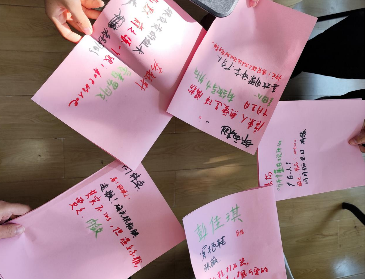 在“快乐传递”环节,同学们在纸笺上写下对彼此的初印象与美好祝愿;而在“我爱我班”活动中,大家用三个词语表达了对班集体的期待。这两项内容有效增强了同学们的归属感,提升了班级凝聚力,让每个人都能在集体中感受到温暖与支持。