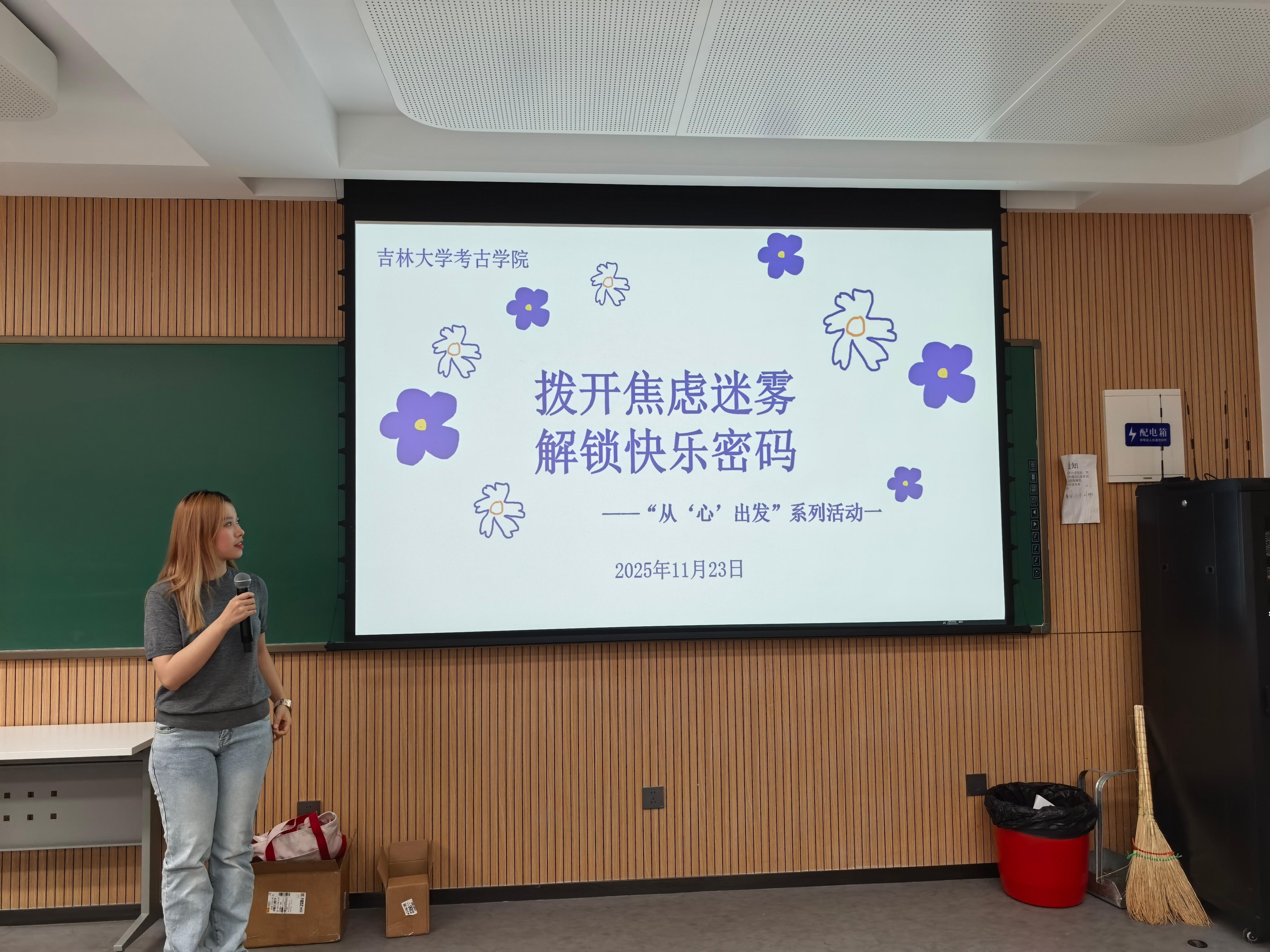 为积极响应心理健康教育号召,切实关爱员工身心健康,帮助同学们科学缓解焦虑情绪、搭建心灵沟通桥梁,11月23日下午,太阳成集团tyc234cc员工会心理健康部在敬信教学楼E区107教室成功举办“从心出发”第一期——“拨开焦虑迷雾,解锁快乐密码”心理健康主题活动。