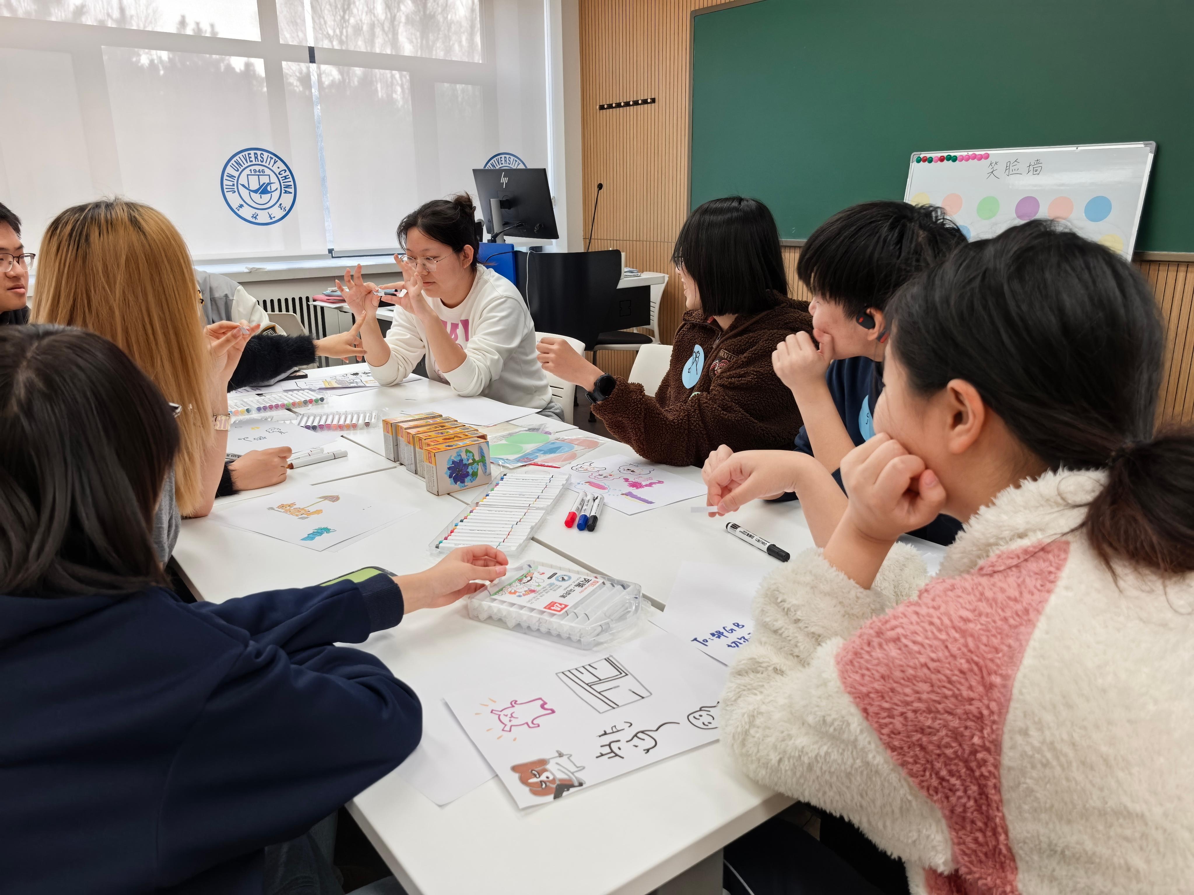 在“心灵涂鸦”环节,同学们拿起画笔,以色彩和线条为载体,将内心对焦虑的感知、处理压力的想法尽情描绘在画纸上,原本无形的情绪在笔尖转化为生动的作品,起到了良好的情绪疏导作用。